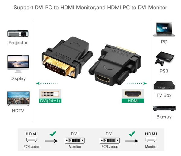 Đầu chuyển đổi DVI 24+1 to HDMI chính hãng Ugreen 20124 (chạy được 2 chiều )