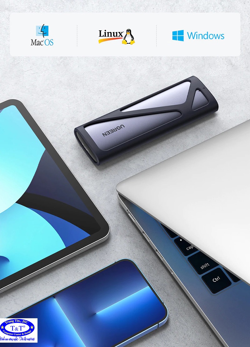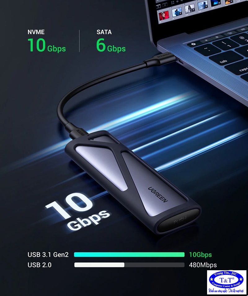 Thông số kỹ thuật: Vỏ đựng ổ cứng SSD M.2 hỗ trợ NVME+SATA USB Type-C 3.2 GEN2 tốc độ 10Gbps Ugreen 90264 cao cấp (Max 2TB)