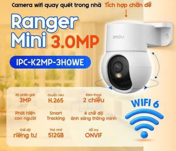 • Camera wifi quay quét trong nhà tích hợp chân đế 3.0MP
