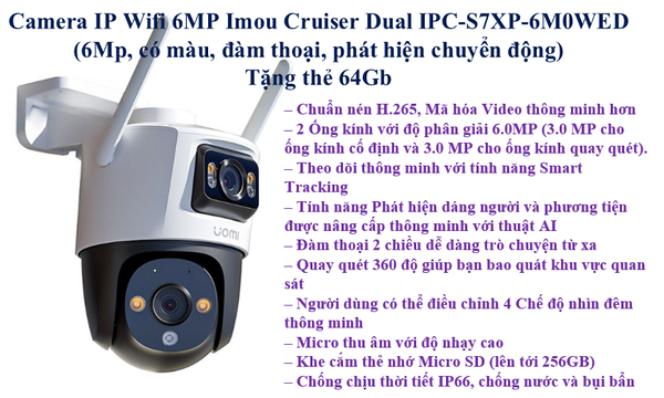 Tính năng nổi bật của camera Wifi iMOU Cruiser Dual 6MP IPC-S7XP-6M0WED Xoay 360 Ngoài Trời