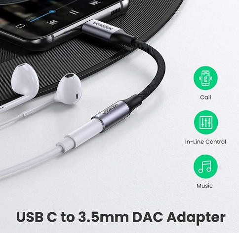 Cáp chuyển đổi âm thanh USB Type-C ra 3.5mm có chip DAC Ugreen 80154 cao cấp