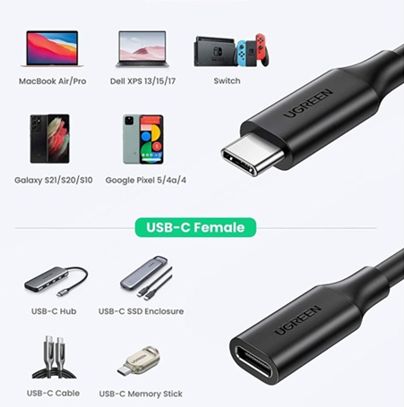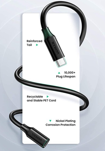 - Cáp nối dài Type C dài 1M Ugreen 10387 này hỗ trợ truyền độ phân giải 4K@60Hz để kết nối MacBook của bạn với màn hình có chất lượng hình ảnh rõ nét gấp 4 lần so với cáp 1080P.