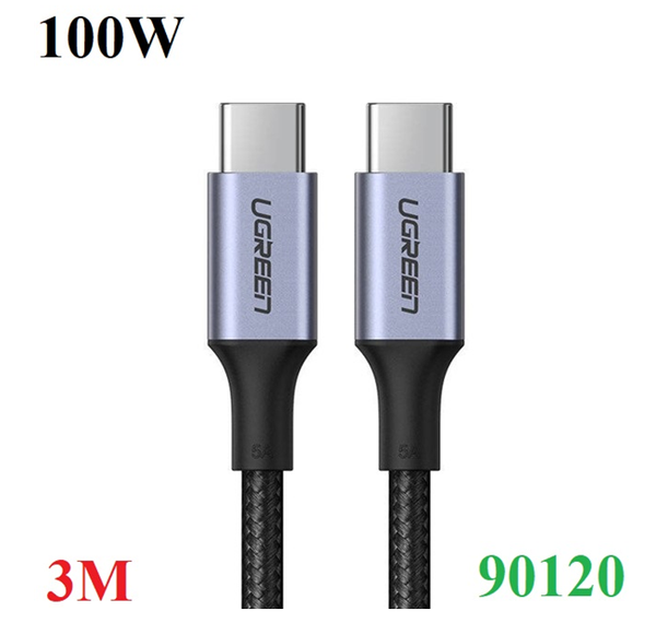 Cáp sạc, dữ liệu USB Type-C to Type-C dài 3M bọc dù hỗ trợ PD 100W Ugreen 90120 cao cấp