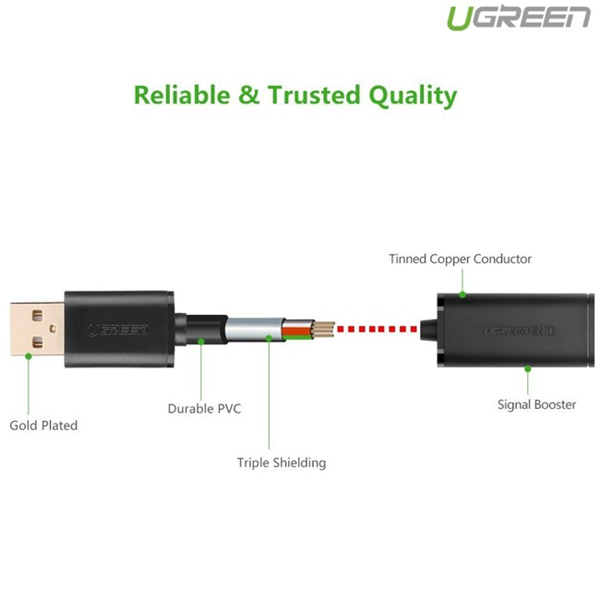 - Cáp USB 2.0 15M Ugreen 10323 hỗ trợ công nghệ cao, tốc độ USB tốc độ truyền tải 2.0 dữ liệu lên đến 480 Mbps. Tính năng Plug & Play, kết nối không cần cài đặt. Ngoài ra cáp mở rộng USB 2.0 Ugreen 10323 này còn tích hợp IC khuếch đại, đảm bảo tín hiệu ổn định khi truyền qua cáp.