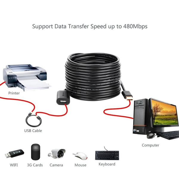 - Cáp nối dài USB 2.0 15M tương thích với Windows, Mac, Linux, Chromebook, và thiết bị ngoại vi USB 2.0 bao gồm ổ đĩa cứng, USB hub, chuột, bàn phím, ổ đĩa flash, máy in, và nhiều hơn nữa.