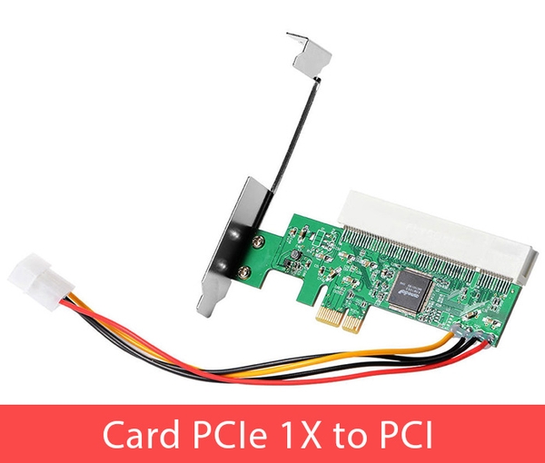 Chuyển đổi PCIe 1x sang 2 khe cắm PCI thường.Sản phẩm thiết kế làm 2 board mạch riêng biệt, nối với nhau qua cáp USB 3.0. Bạn dễ dàng lắp đặt card PCI bên trong vỏ case hoặc ra ngoài case.