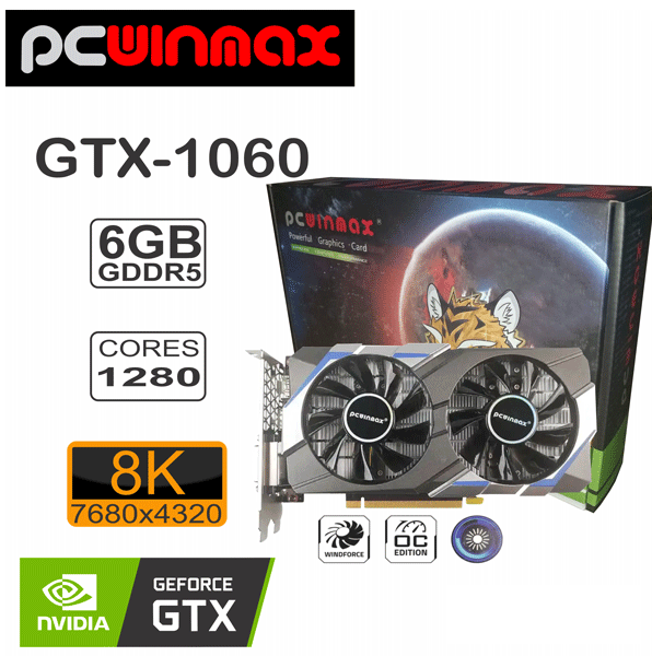 Card màn hình PCWINMAX GEFORCE GTX 1060 6GB (GDDR5 | 192 BIT | 3xDP+HDMI+DVI) *bảo hành 36 tháng*