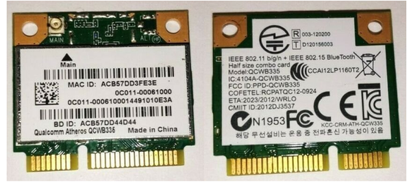 Card Wi-Fi WLAN Wireless Qualcomm Atheros QCWB335 Wifi 802.11 b/g/n + Bluetooth 4.0 - Dùng cho Laptop Asus K45A K45D K45C 0C001-00041100 - Cũ bóc máy