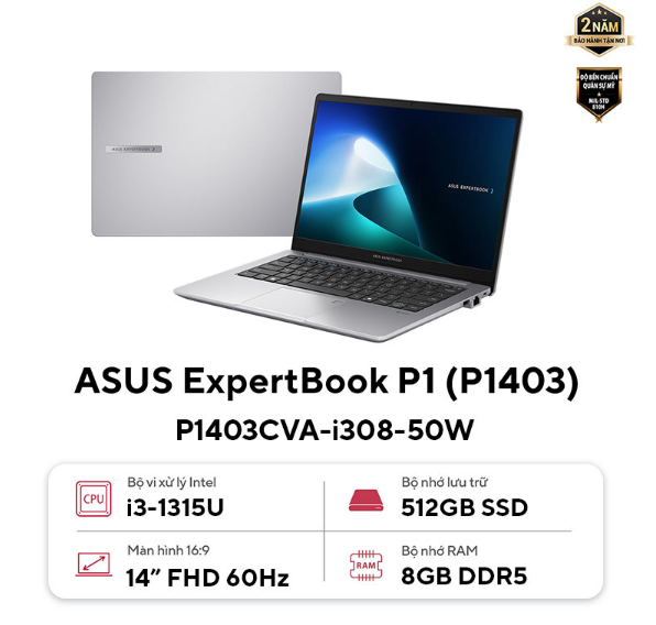 Laptop ASUS ExpertBook P1403CVA-i308-50W (Intel Core i3-1315U | Intel UHD | 14 inch FHD | 8GB | 512GB | Win 11 | Xám)