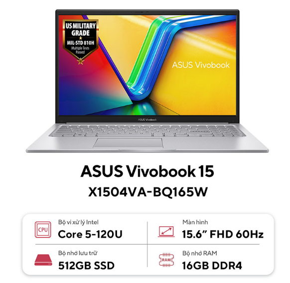 Laptop Asus Vivobook 15 X1504VA-BQ165W (i5-120U | 16GB | 512GB | 15.6 inch FHD IPS 60Hz | Win 11 | Bạc) Túi + Chuột + bàn di chuột + Bộ vệ sinh + Office