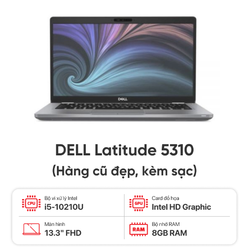 Laptop cũ [99%] Dell Latitude 5310 (i5-10310U | 8GB | 256GB | 13.3 inch FHD | Bạc) Tặng túi + Chuột * BẢO HÀNH 03 THÁNG *