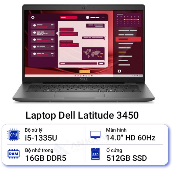 Laptop Dell Latitude 3450 (i5-1335U | 16GB | 512GB | 14 inch FHD | Win 11| Black | NK) Túi + Chuột + bàn di chuột + Bộ vệ sinh + Office