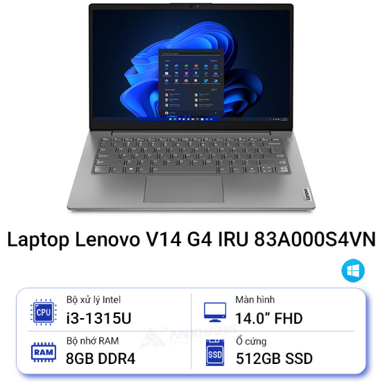 Laptop Lenovo V14 G4 IRU 83A000S4VN (i3-1315U | 8GB | 512GB | 14 inch FHD IPS | Win 11| Xám)