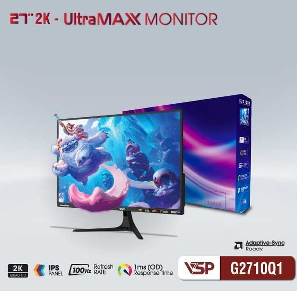 Màn hình 27 Gaming VSP G2710Q1 (27 inch | 2K | QHD | 100Hz | IPS | Đen)