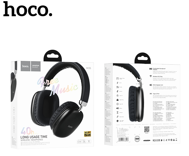 Tai nghe chụp tai Hoco W35 (Không dây | Bluetooth | Tai mèo | khe cắm thẻ nhớ | dây cắm 3.5mm) Hồng, Xanh
